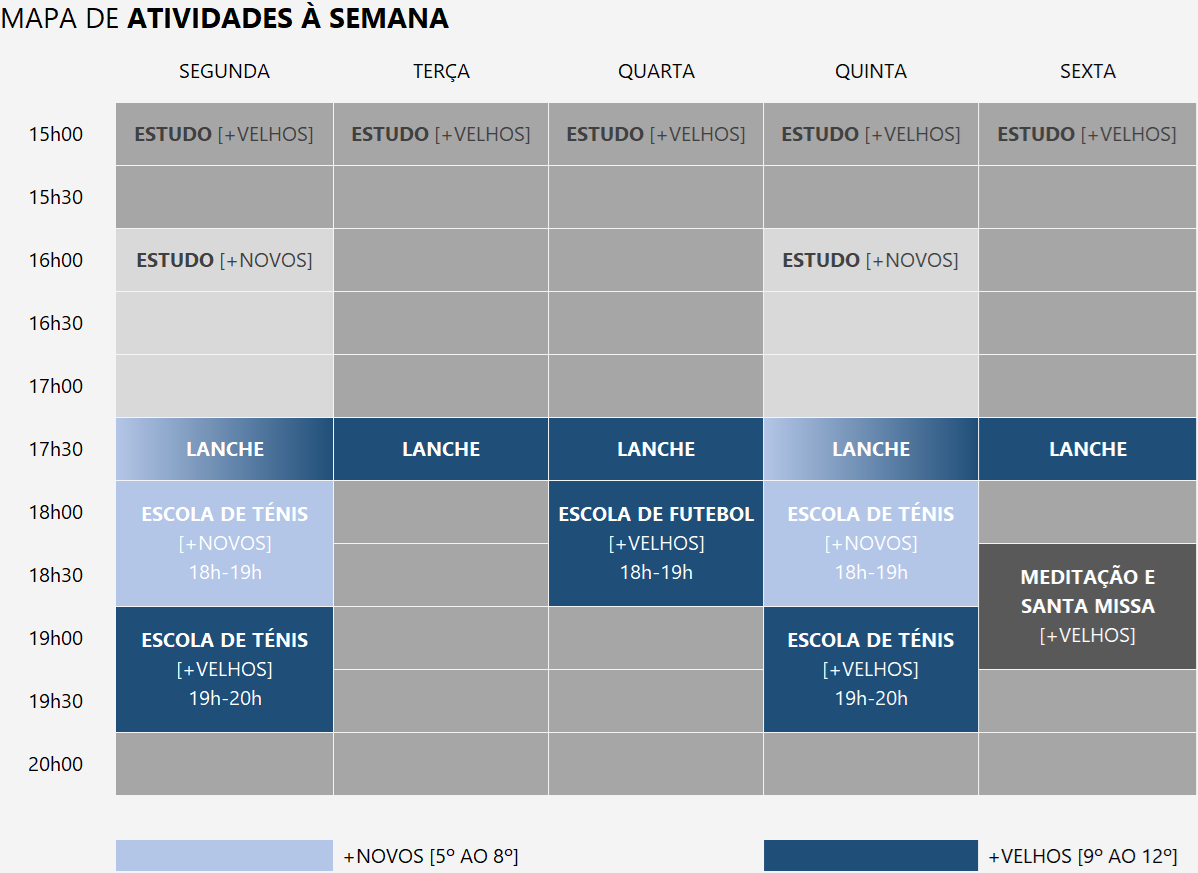 Para os mais velhos [9º ao 12º], a sala de estudo estará aberta de 2ª a 6ª, das 15h00 às 20h00.